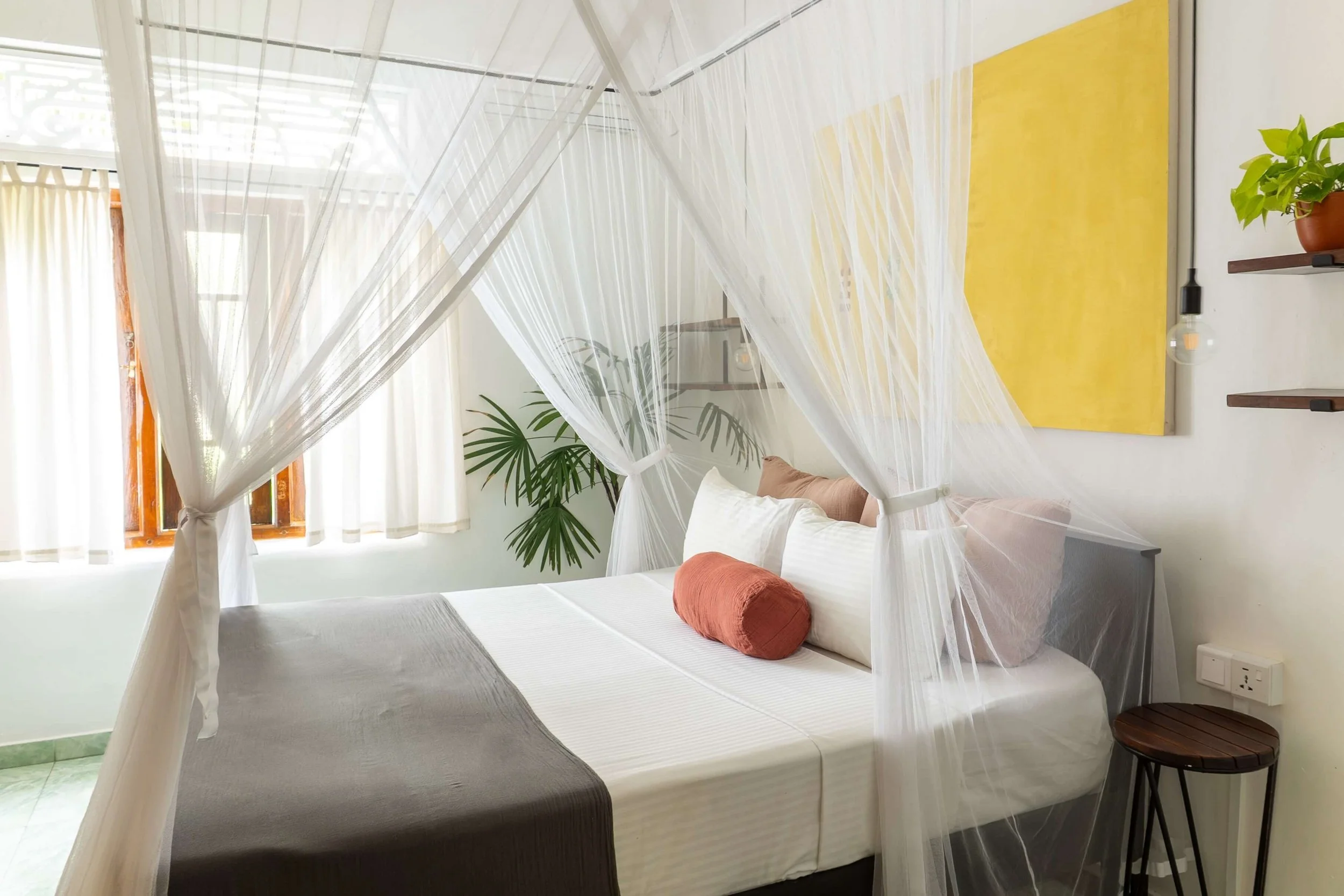 Our rooms at Lotus are designed to help you effortlessly wind down and embrace the power of pause. You can choose between our private rooms (one double bed) or twin rooms (two single beds). All rooms have a private, ensuite bathroom and are furnished with comfortable beds, fans, air conditioning and mosquito nets. The rooms have been intentionally decorated in a beautiful, minimalistic fashion, as a clutter free environment promotes mental clarity and wellbeing.
